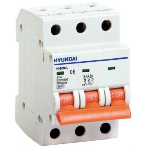 HYUNDAI 6kA 50A 3P C დაიცავს თქვენს ქსელს მოკლე ჩართვისგან და გადატვირთვისგან.